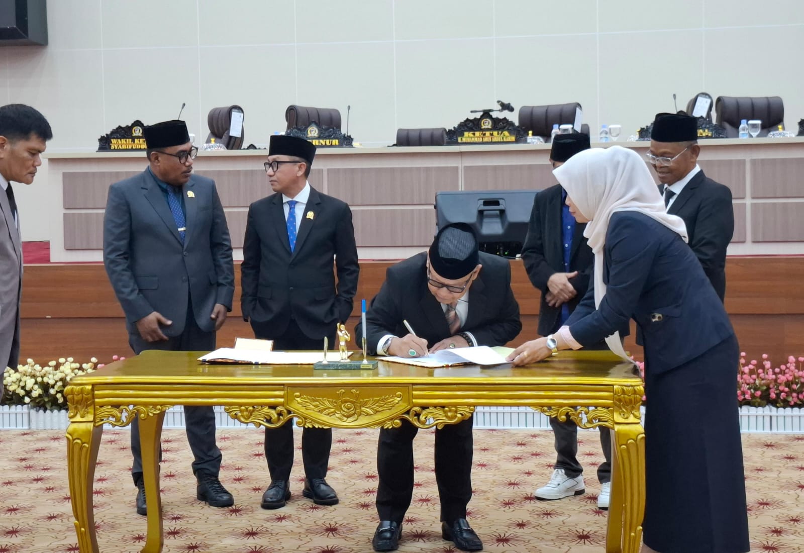Selain mengumumkan pasangan terpilih, DPRD juga mengusulkan pemberhentian dengan hormat Gubernur Rusdy Mastura dan Wakil Gubernur Ma’mun Amir yang masa jabatannya akan berakhir pada 2025.