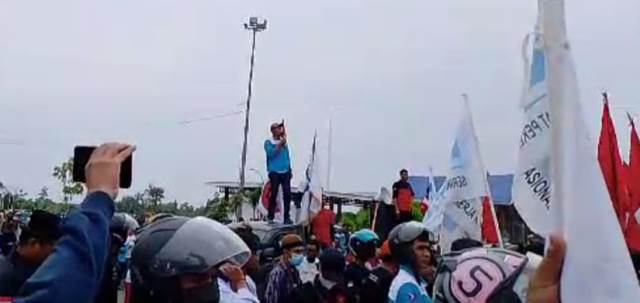 Dalam orasinya Koordinator Aksi, Rudin, meminta kepada Pemkab agar menindaklanjuti aspirasi pekerja yang dituangkan dalam kesepakatan bersama, yang berjumlah enam butir.